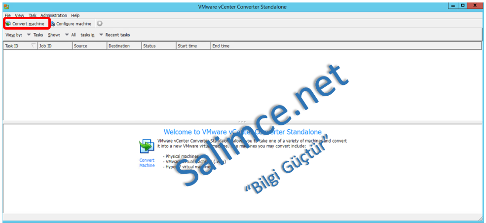 Kurulum tamamladıktan sonra programı çalıştırdığımızda bizi aşağıdaki ekran karşılayacak. Burada Convert machine butonu tıklıyor ve işlemlerimizi başlatıyoruz.
