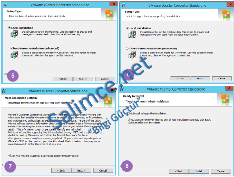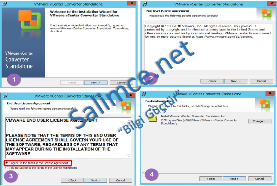 İşlemlerimize VMware vCenter Conventer Standalone programının kurulumu ile başlıyoruz. Aşağıdaki resimlerdeki adımları izleyerek kurulumu tamamlıyoruz