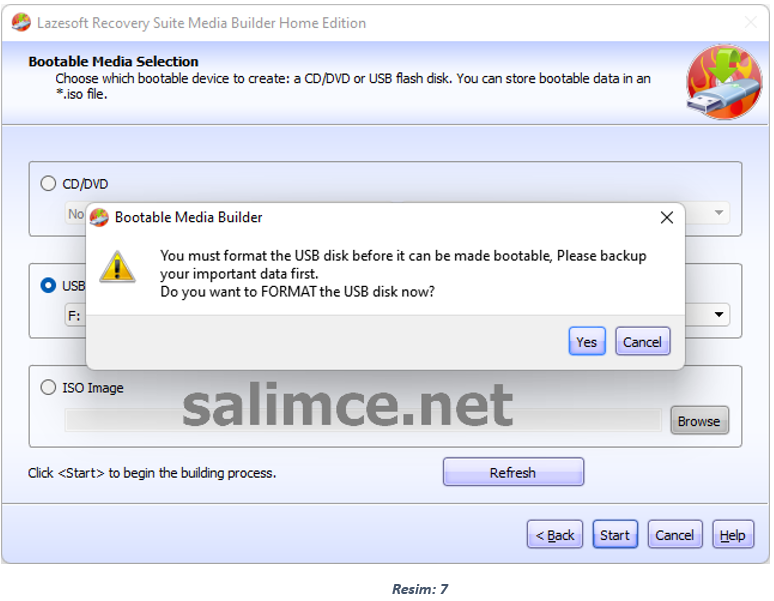 İso İmajı indirme işlemi tamamlandıktan sonra İso İmajını USB Belleğe yazmak için USB Belleğin formatlanmasını ister misiniz sorusuna Yes diyerek devam ediyoruz. Bu işlem Usb Bellekteki tüm bilgileri silecektir. Önemli bilgileriniz varsa mutlaka Usb Belleğinizdeki verileri yedekleyin.
