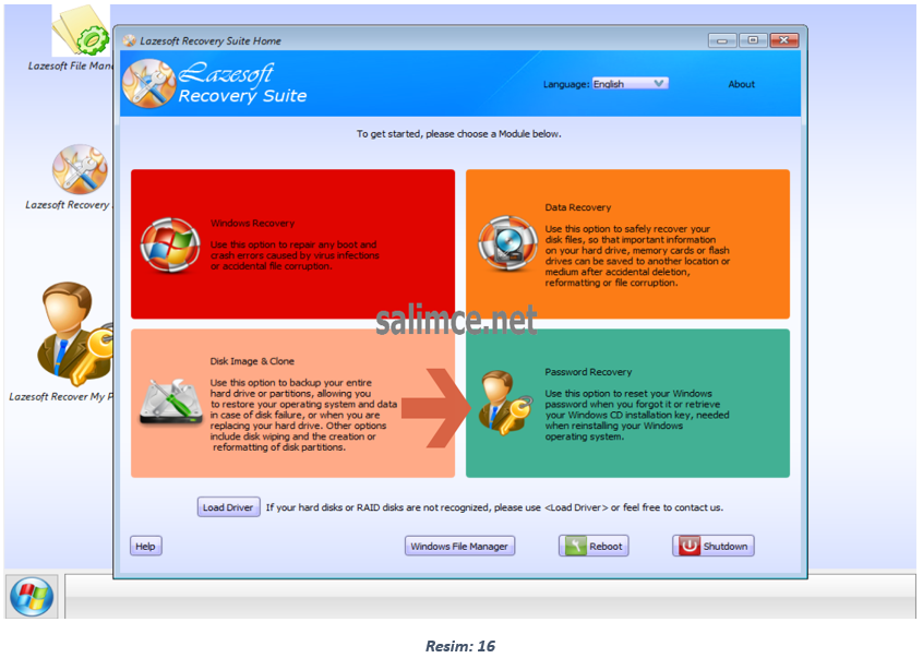 Öncelikle Lazesoft (Lazesoft Recovery Suite) Programında kısaca bahsedecek olursak; Bu Program beraberinde pek çok faydalı araç barındırmaktadır. Bu araçlar Veri kurtarma, Şifre kurtarma ve Disk imaj ve klonlaması şeklinde pek çok faydalı modül halinde yer almaktadır.