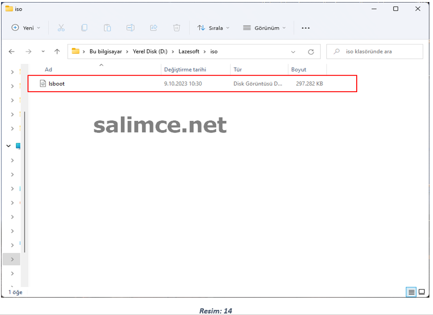 Oluşturduğumuz imaj Dosyası Aşağıdaki gibi ilgili klasörde görülecektir. Bu İmaj Dosyasını Rufus ya da WinSetupFromUSB yardımıyla USB belleğinize yazdırabilirsiniz.