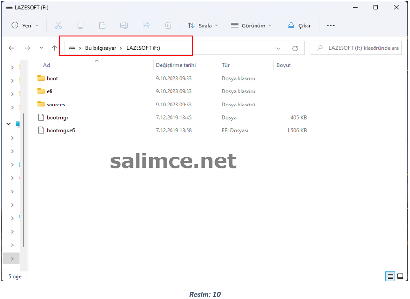 İşlemler tamamlandıktan sonra USB Belleğimizin içi aşağıdaki gibi görülecektir.